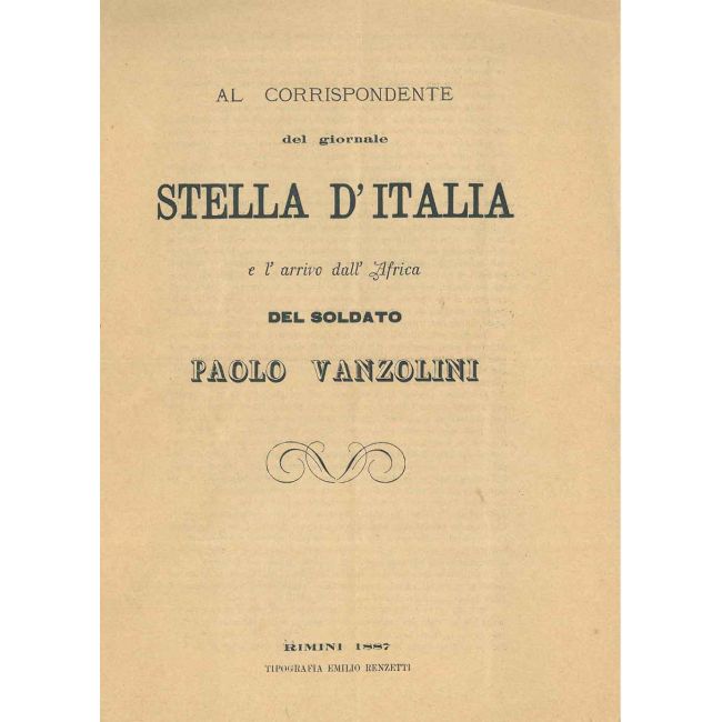 Al corrispondente del giornale Stella d'Italia e l'arrivo dall'Africa del soldato Paolo Vanzolini |
