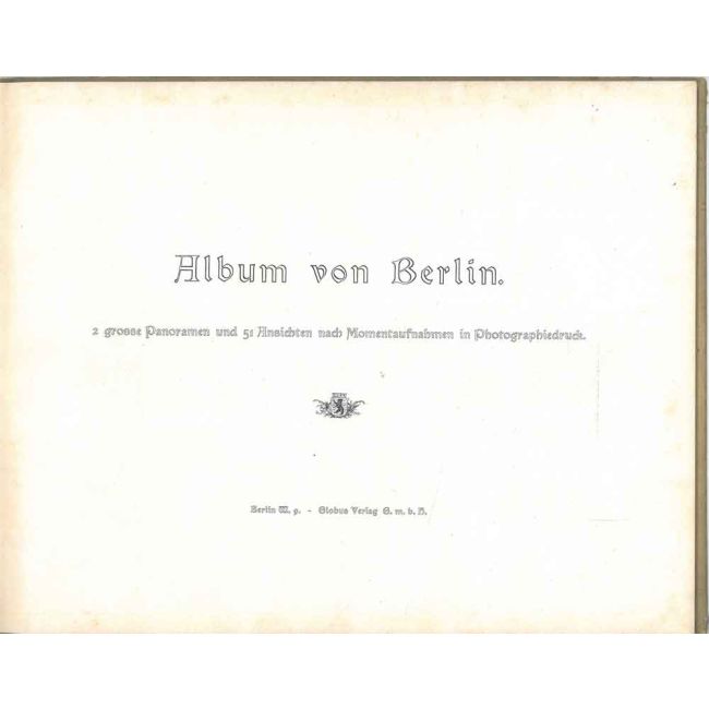 27x35 cm (album), rilegatura editoriale illustrata a colori con stemma di Berlino; pp. (54), 2 foto panoramiche su doppia pagina e 51 foto a piena pagina
