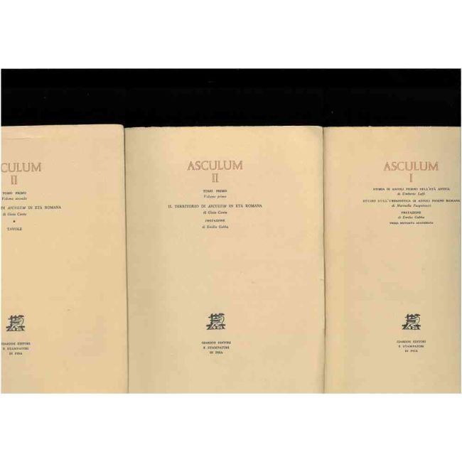 | titolo | Asculum I: Storia di Ascoli Piceno nell'età antica; Studio sull'urbanistica di Ascoli Piceno Romana; Asculum II: tomo primo Vol. I: Il territorio di ASCULUM in età romana; Vol. II Tavole; |