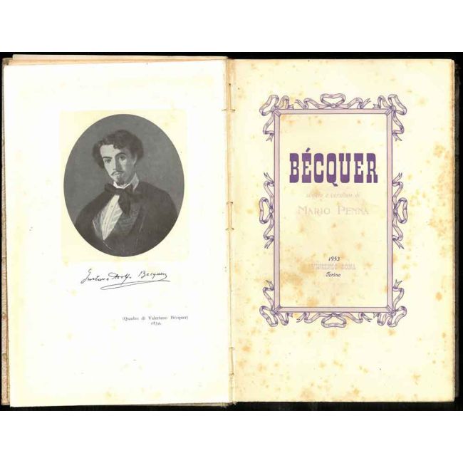 | descrizione | 21 cm, rilegatura editoriale coeva in cartone rigido con fregi in oro ad entrambi i piatti e al dorso, titolo in oro al dorso, taglio superiore colorato, p. VIII, 198. Alcuni disegni e fotografie in nero a piena pagina f.t. Testo in cornice tipografica viola. Ritratto di Bécquer all'antiporta. Allegato sciolto "Qualche giudizio della Stampa sul Capodanno Bona 1954" di p. 10. Alcune bruniture che non disturbano la lettura del testo. |