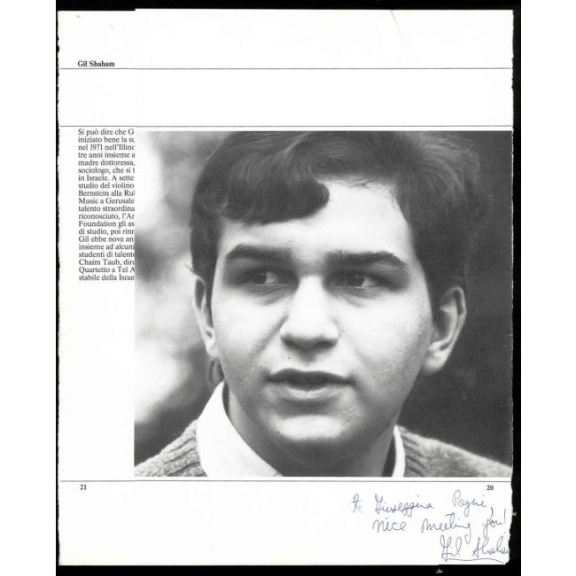 Fotografia di Gil Shaham tratta da pubblicazione a stampa del Teatro alla Scala, con dedica autografa "To Giuseppina Pagni, nice meeting you! "