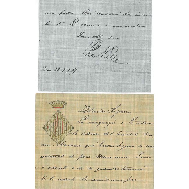 11,5x9 cm; "... La ringrazio e Le ritorno la lettera del comitato veronese. Davvero que' buoni signori si accontentano di poco. Meno male..." |