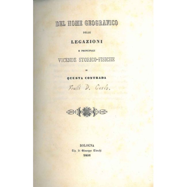 Del nome geografico delle legazioni e principali vicende storico-fisiche di questa contrada