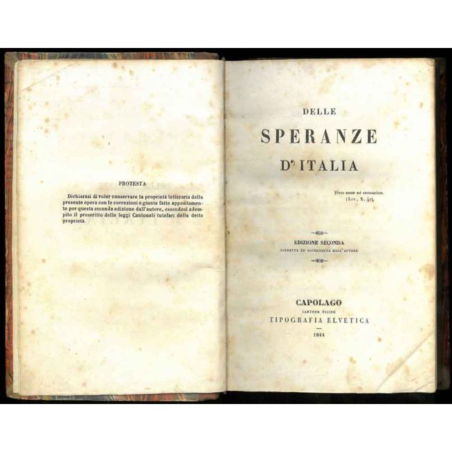 18 cm, rilegatura coeva in mezza pelle con titolo e fregi impressi in oro al dorso, piatti marmorizzati, p. XXVI, 458. Bruniture chiare e marginali. |