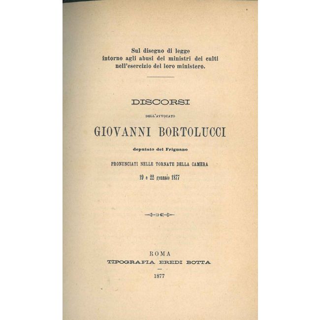 Discorsi dell'avvocato Giovanni Bortolucci deputato del Frignano pronunciati nelle tornate della Camera 19 e 22 gennaio 1877