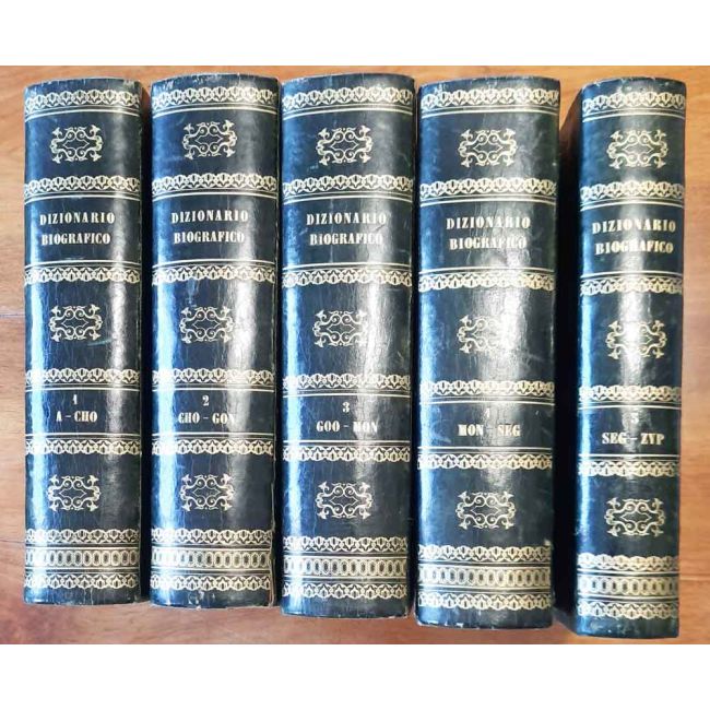 | descrizione | 5 volumi, 26,5 cm, bella rilegatura coeva in mezza pelle, titolo e ricche decorazioni in oro al dorso, testo su due colonne; p. 1040; 1168; 1200; 1200; 836. 19 belle tavole litografiche fuori testo e protette da velina incise finemente con ritratti o fatti storici ad opera di Zuliani, Fusella, Fea, Migliavacca, Jacquemin, Avico, Lallemand, Polacco, Lauro, Puliti, Geille su disegni di Pollastrini, Turchi, Delaroche, Marcovich, Gonin, ecc. "Prima versione dal francese con molte giunte e correzioni e con una raccolta di tavole comparative ora per la prima volta compilate dimostranti per secoli e per ordini il tesoro di chiari ingegni che può vantare ogni nazione posta a riscontro delle altre".Bruniture assai rare, ma esemplare fresco e ben conservato traduzione conclusa nel 1849. Cfr. Iccu. |