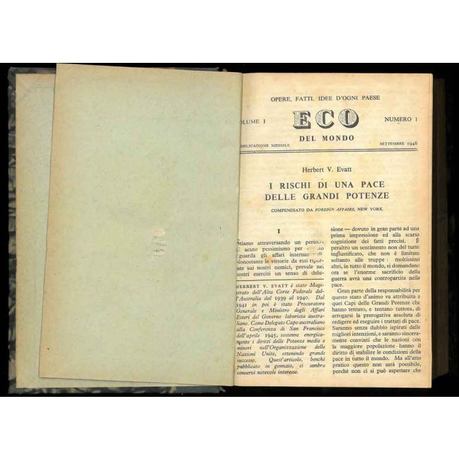 | descrizione | -1947. 2 volumi, 19 cm, belle rilegature in mezza tela con titolo e fregi impressi in oro al dorso, piatti marmorizzati, p. 768; 766. Numerose illustrazioni in nero n.t, alcune anche a piena e doppia pagina. Il primo volume contiene i primi 6 numeri del 1946 che contano circa 100 pagine ciascuno, ma la numerazione è continua. Il secondo volume comincia dal numero 7 al numero 12. Anche il secondo volume conta numerose illustrazioni in nero n.t, a piena e doppia pagina. Sono presenti tutti i frontespizi, mancano le copertine delle brossure. |