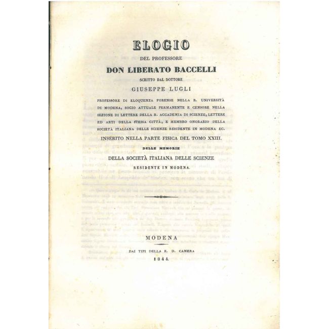 Elogio del professore Don Liberato Baccelli... inserito nella parte fisica del tomo XXIII delle memorie della Società italiana delle scienze residente in Modena