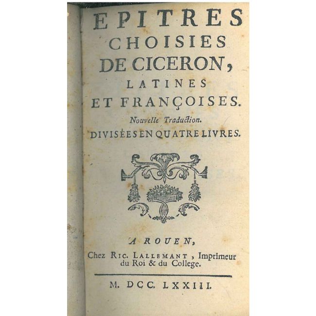 Epitres choisies de Ciceron, latines et françoises. Nouvelle traduction divisées en quatre livres