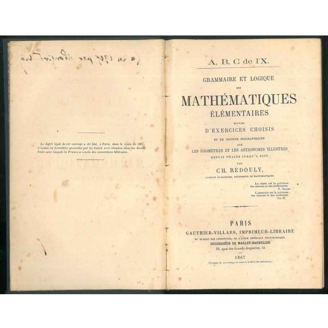 Grammaire et logique élémentaires suivies d'exercices choisis et de notices biographiques sur les géomètries et les astronomes illustres depuis Thalès, jusqu'a Biot. par Ch. Redouly