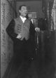 Fotografia originale con il comico in abito da scena con dedica, firma e data autografe (1957)