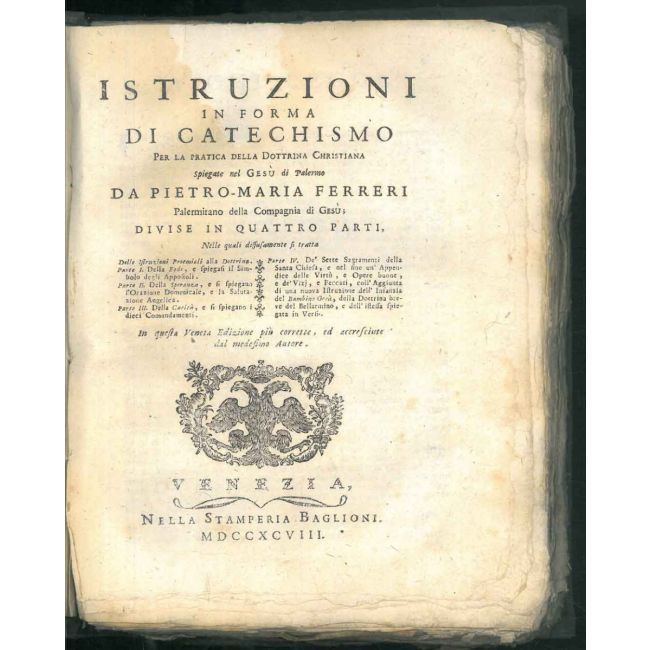 | titolo | Istruzioni in forma di catechismo per la pratica della dottrina cristiana spiegate nel Gesù di Palermo divise in quattro parti. In questa Veneta Edizione più corrette, ed accresciute dal medesimo autore. |