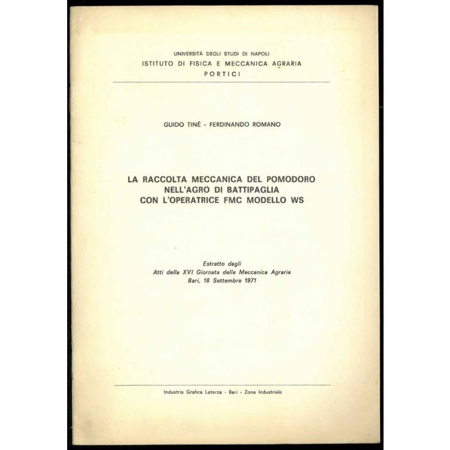 La raccolta meccanica del pomodoro nell'agro di Battipaglia con l'operatrice FMC modello WS. Estratto dagli Atti della XVI Giornata della Meccanica Agraria.