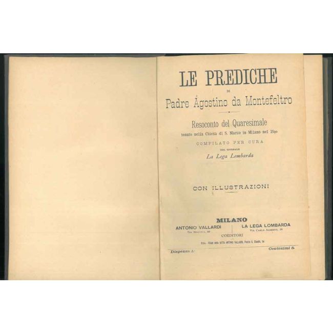 Le prediche di Padre Agostino da Montefeltro. Resoconto del Quaresimale tenuto nella Chiesa di S. Marco in Milano nel 1890 compilato per cura del giornale La Lega Lombarda.