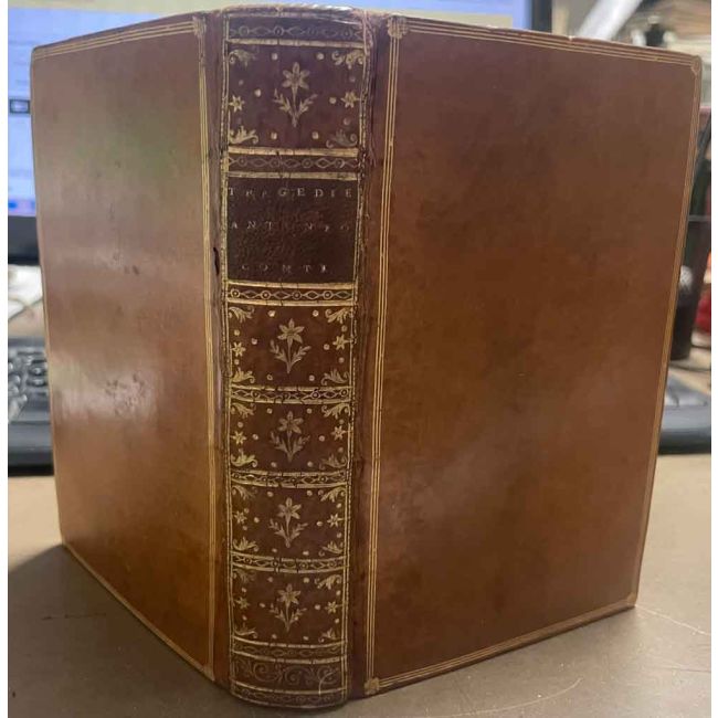 | descrizione | 17 cm, bella rilegatura coeva in piena pelle, titolo e fregi in oro al dorso, cornice in oro ai piatti, tagli e risguardie marmorizzate, segnalibro in tessuto, p. (2), XII, 616. Bella marca tipografica incisa al frontespizio stampato in rosso e nero. Con una tavola genealogica più volte ripiegata. Finalini calcografici in fine di ogni opera. L'opera contiene le seguenti tragedie: Giunio Bruto, Marco Bruto, Giulio Cesare, Il Druso. |