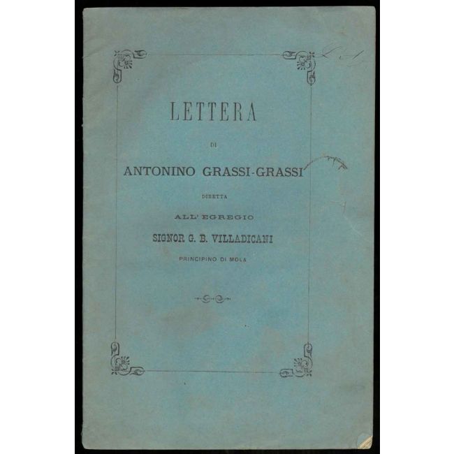 Lettera di Antonino Grassi-Grassi diretta all'Egregio Signor G.B. Villadicani, Principino di Mola.