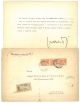10,5x13,5 cm, biglietto con stemma sabaudo intestato "R. Provveditore agli Studi di Livorno, Gabinetto". 4 righe manoscritte con firma autografa di G. Marradi. Certificazione di originalità applicata al retro