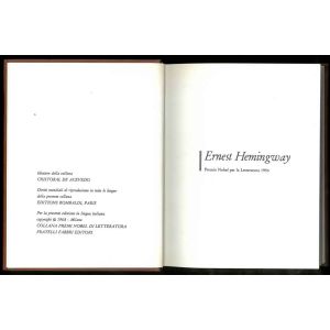 2. Autore: De Acevedo, Cristobal (ideatore della collana). Ernest Hemingway. Premio Nobel per la Letteratura 1954.