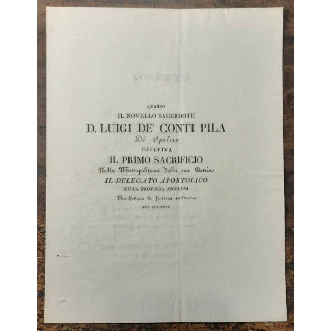 Quando il novello Sacerdote D. Luigi dè conti Pila di Spoleto offriva il primo sacrificio...