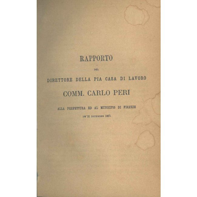 Rapporto del direttore della Pia casa di lavoro alla prefettura ed al municipio di Firenze de' 31 dicembre 1867