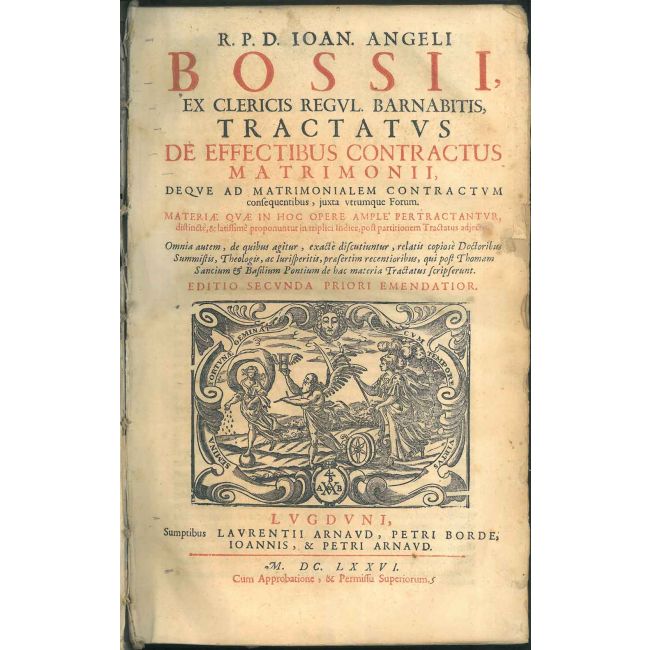 RPD Ioan. Angeli Bossii... Tractatus de effectibus contractus matrimonij, deque ad matrimonialem contractum consequentibus, iuxta utrumque forum... Editio secunda priori emendatior