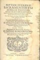 Septem Ecclesiae sacramentorum moralis discussio decem tractatibus distincta in quibus clarè, brevitèr, & distinctè solvuntur difficultates omnes morales, quae ad notitiam sacramentorum spectare possunt, iuxta Sacro Canones, & decreta summorum pontificum