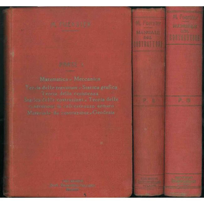 Manuale del costruttore. Parte prima: matematica - meccanica - teoria delle travature etc; Parte seconda: architettura pratica - elementi delle costruzioni in ferro - costruzioni industriali etc; Parte terza: ferrovia - distribuzione d'acqua alle città - fognature etc.