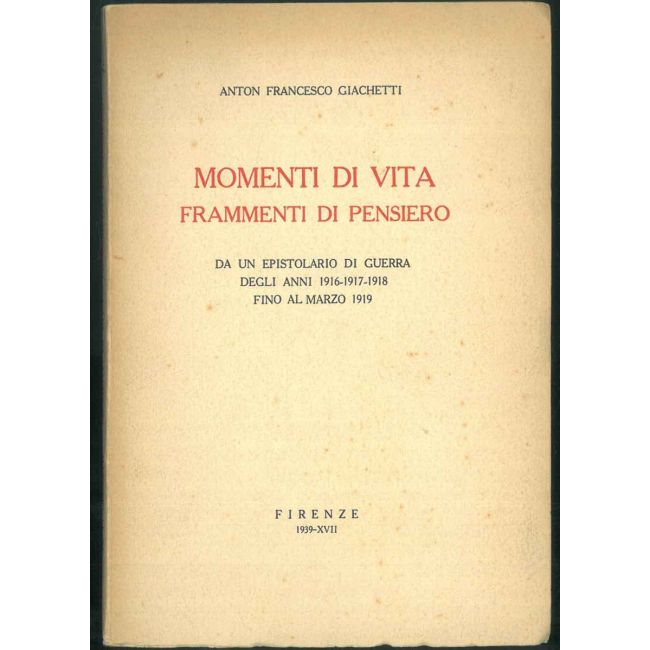 Momenti di vita. Frammenti di pensiero. Da un epistolario di guerra degli anno 1916-1917-1918 fino al Marzo 1919. |