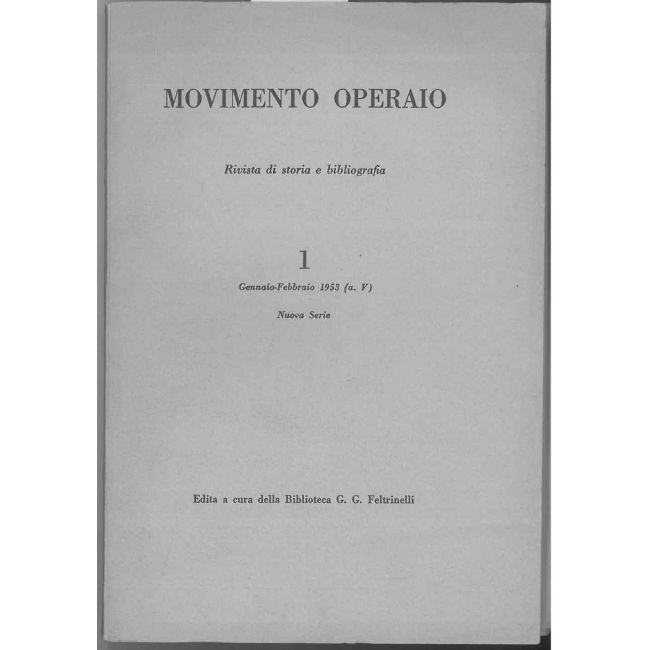 Movimento operaio. Rivista di storia e bibliografia. N°1 Gennaio-Febbraio 1953