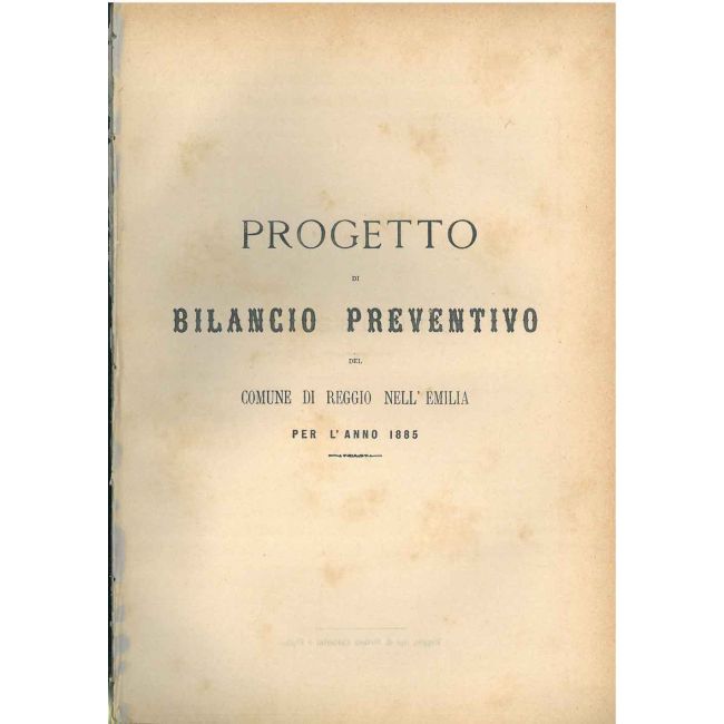 Progetto di bilancio preventivo del comune di Reggio nell'Emilia per l'anno 1885