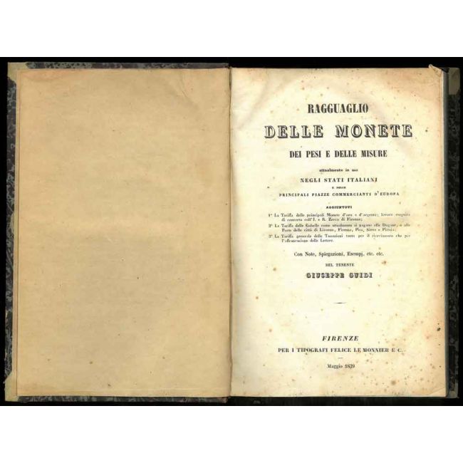Ragguaglio delle monete dei pesi e delle misure attualmente in uso negli stati italiani e nelle principali piazze commercianti d'europa. Con note, spiegazioni, esempj etc etc.