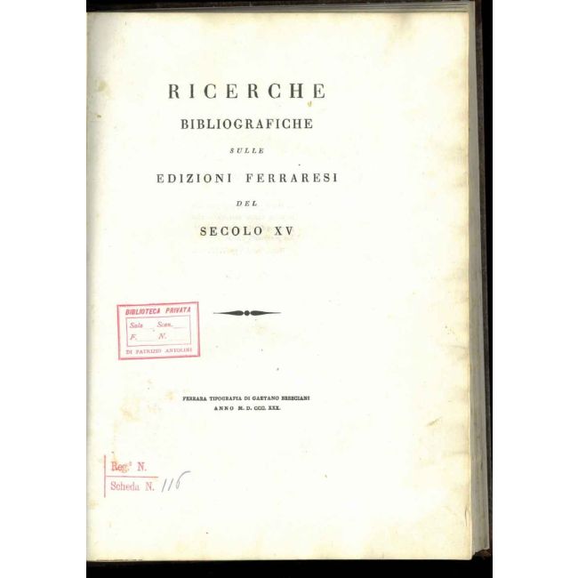 | parole chiave | bibliografia, bibliofilia, tipografia, incunaboli, storia, storia locale, emilia romagna, Ferrara, antichi e rari |