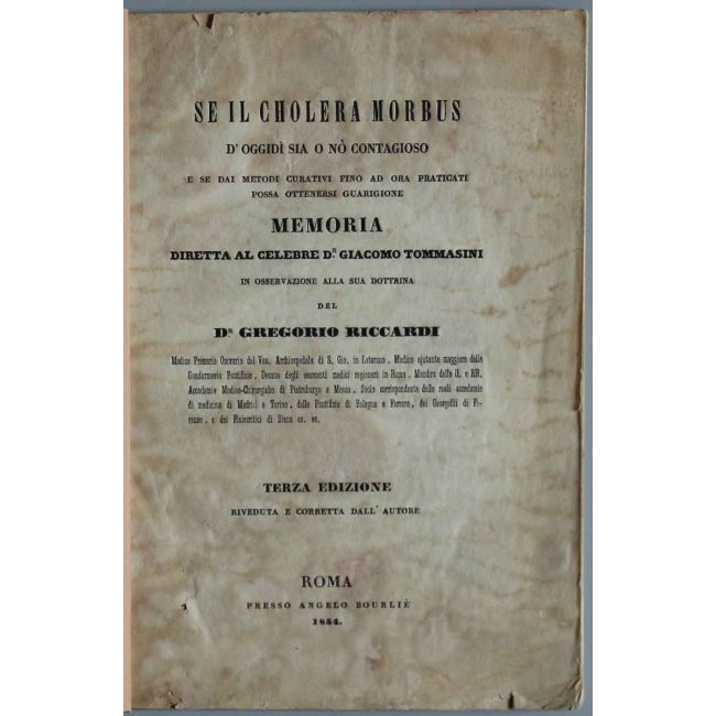Se il Cholera Morbus d'oggidì sia o no contagioso e se dai metodi curativi fino ad ora praticati possa ottenere guarigione. Memoria diretta al celebre Dr. Giacomo Tommasini.