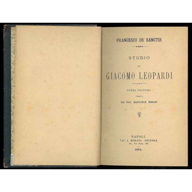 Studio su Giacomo Leopardi. Opera postuma curata dal Prof. Raffaele Bonari. |