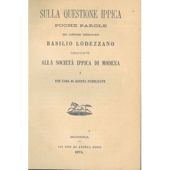 Sulla questione ippica poche parole del capitano veterinario Basilio Lodezzano dedicate alla società ippica di Modena e per cura di questa pubblicate