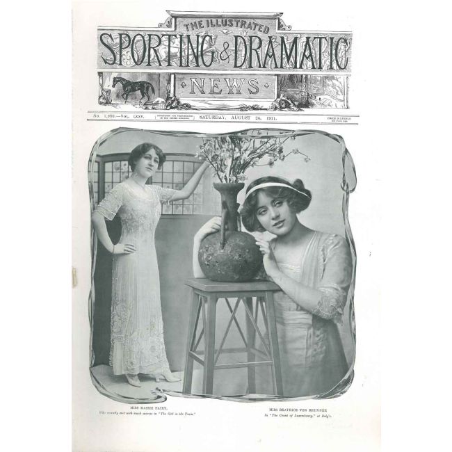 The Illustrated sporting dramatic news. August 26, 1911. Cover, Miss Maisie Fairy and Miss Beatrice von Brunner